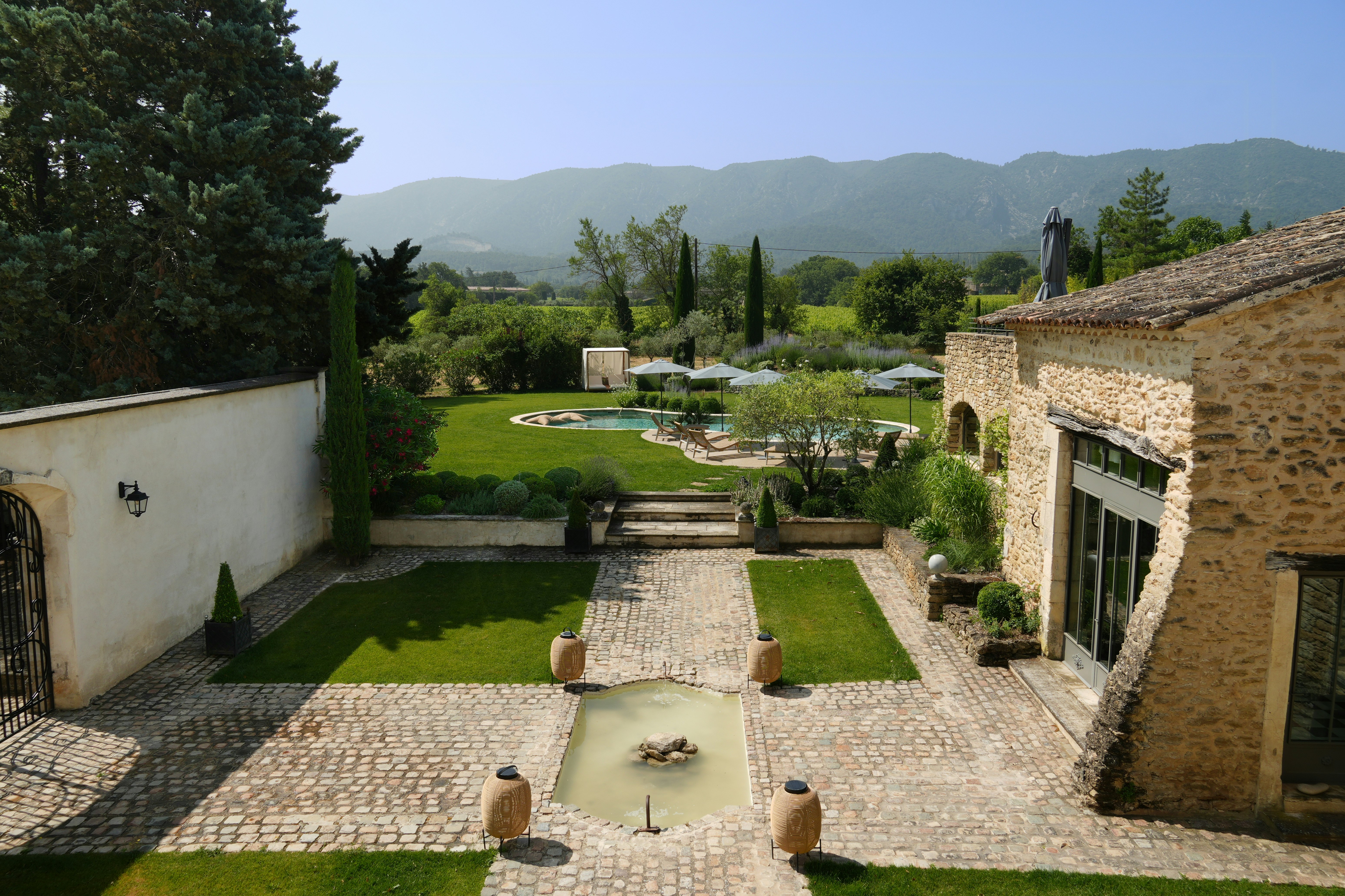 1900-talls gårdshus med svømmebasseng vendt mot Luberon