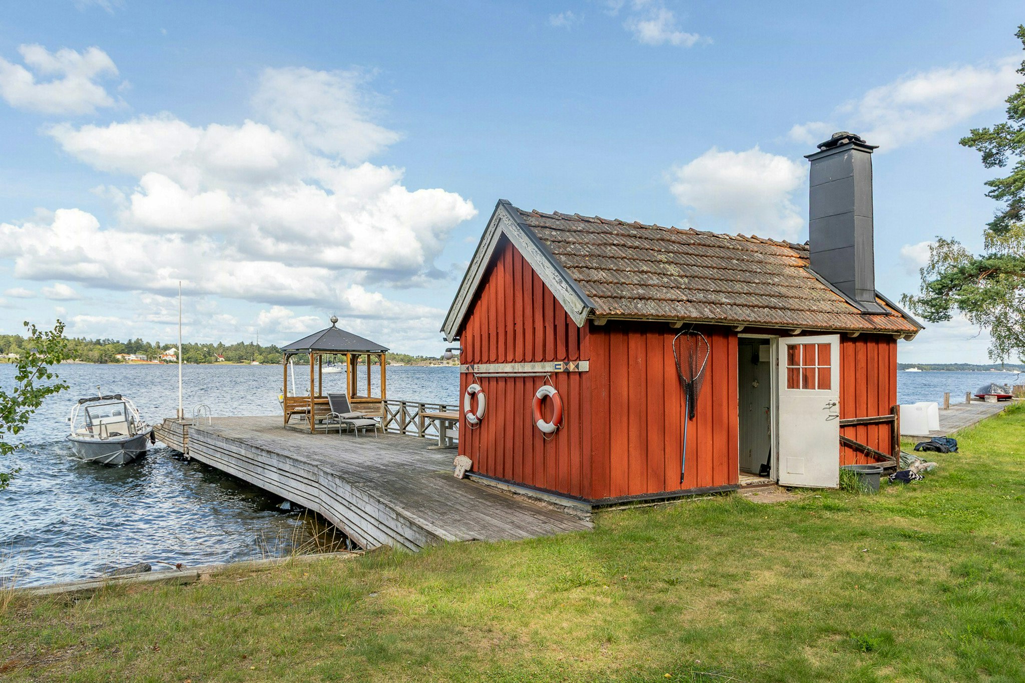 - Njut av egen strand med bastu, brygga och paviljong