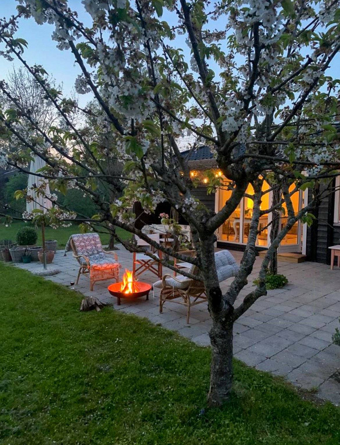 - Njut av trädgården med äppel- och körsbärsträd på en grönskande gräsmatta