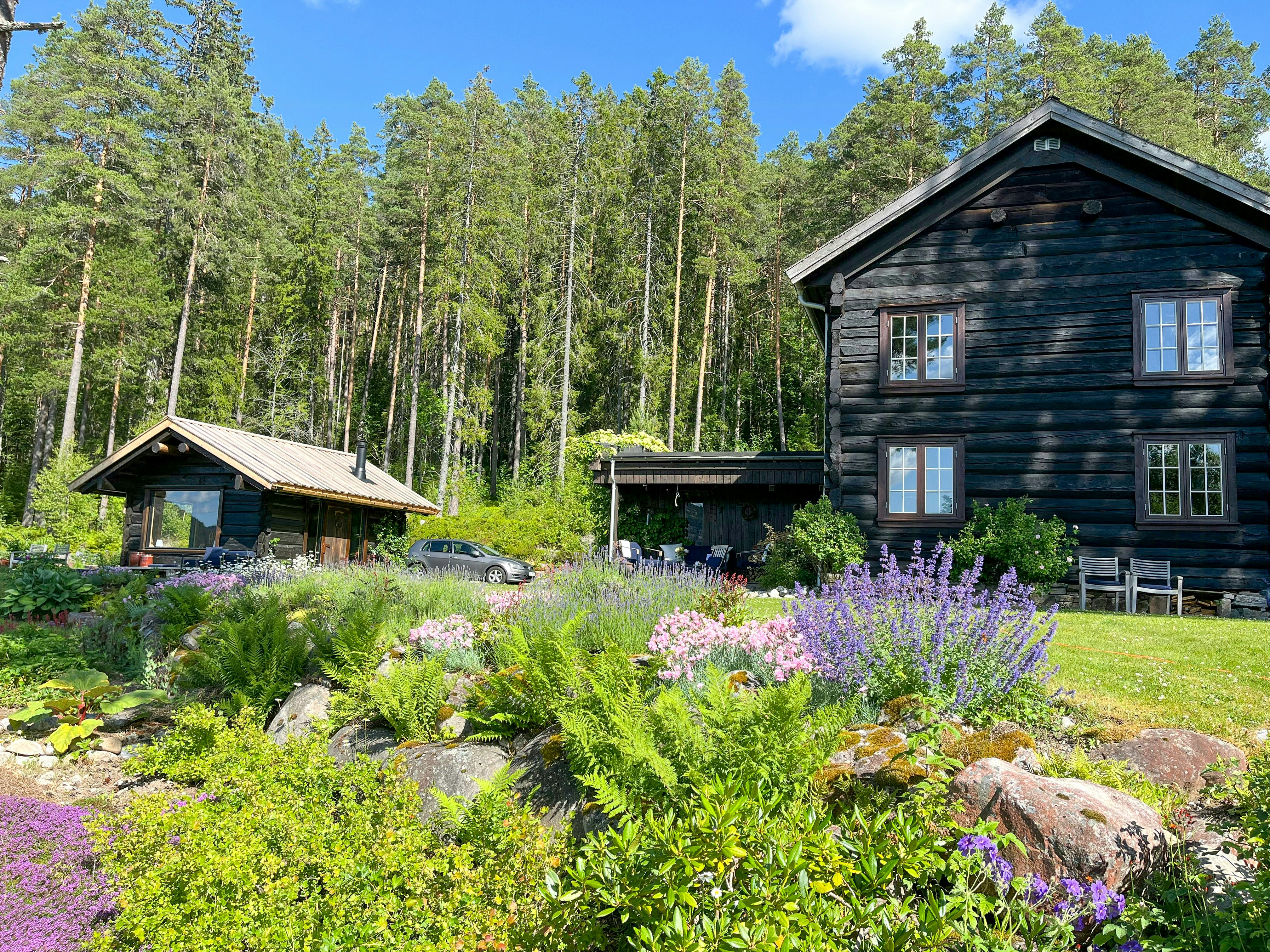 Stuga från 1600-talet med trädgård vid Byglandsfjorden