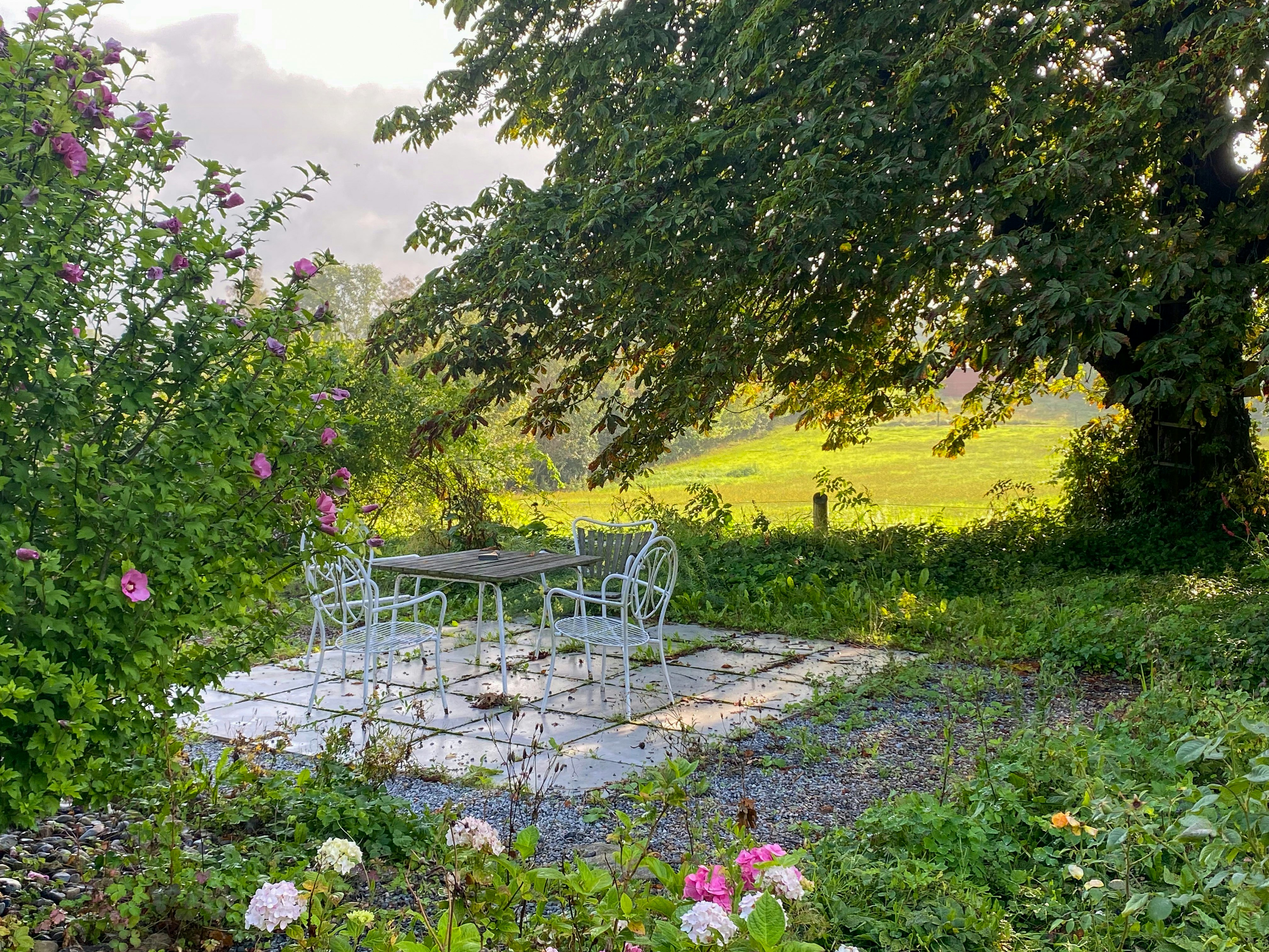 - Koppla av i den stora vilda trädgården med gamla träd och utsikt över ängarna.