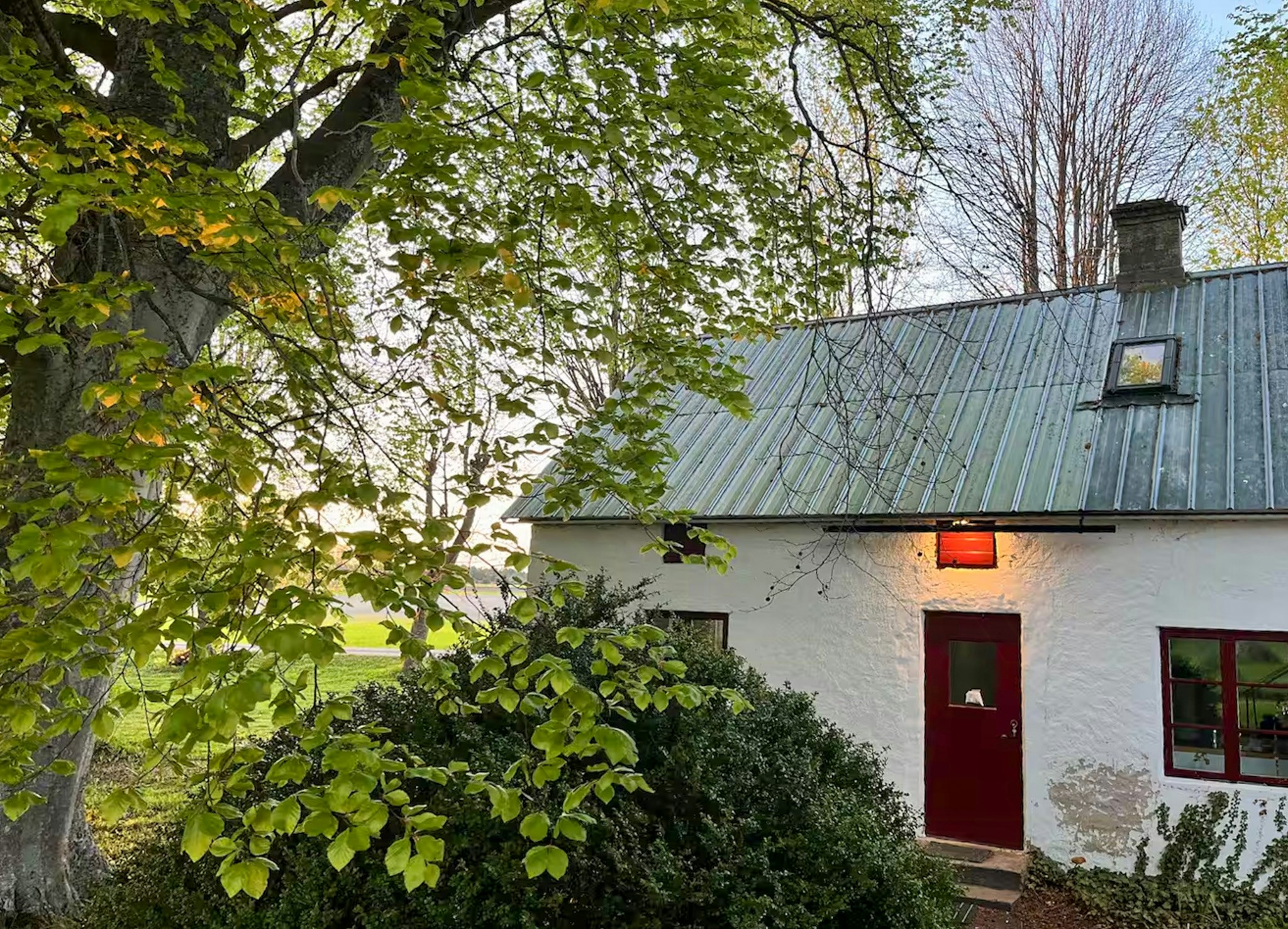 Kalkstenshus med parkliknande trädgård på När