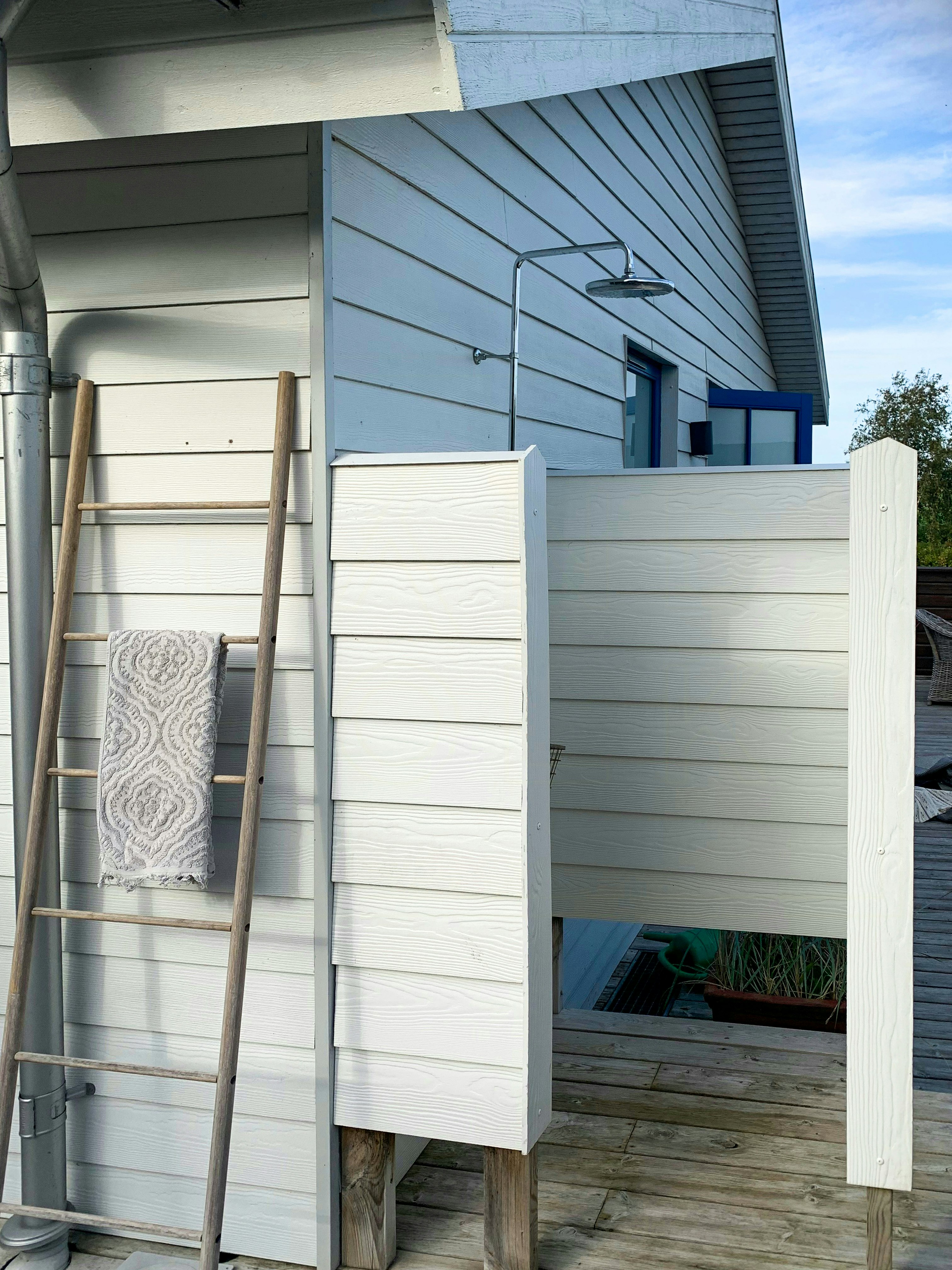 - Spela fotboll på den rymliga gräsmattan med mål i den inhägnade trädgården.