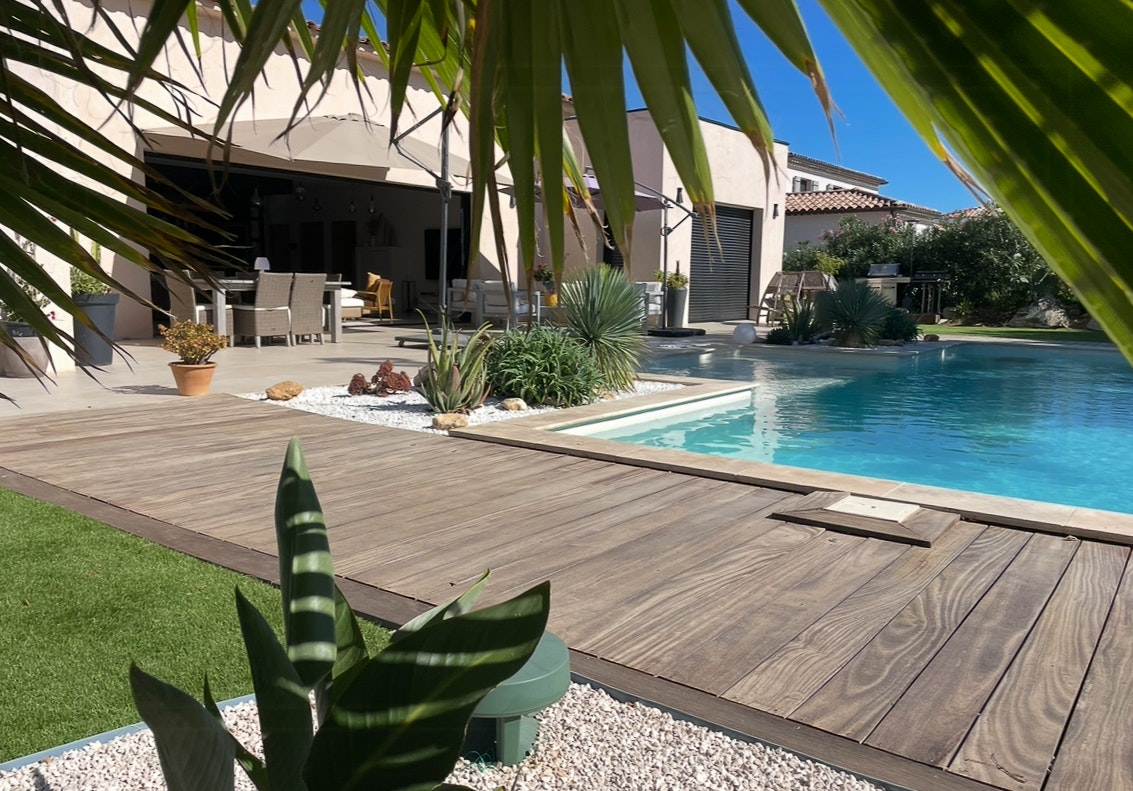 - Njut av ett 6 meter långt fönsterparti som vetter mot terrassen och poolen