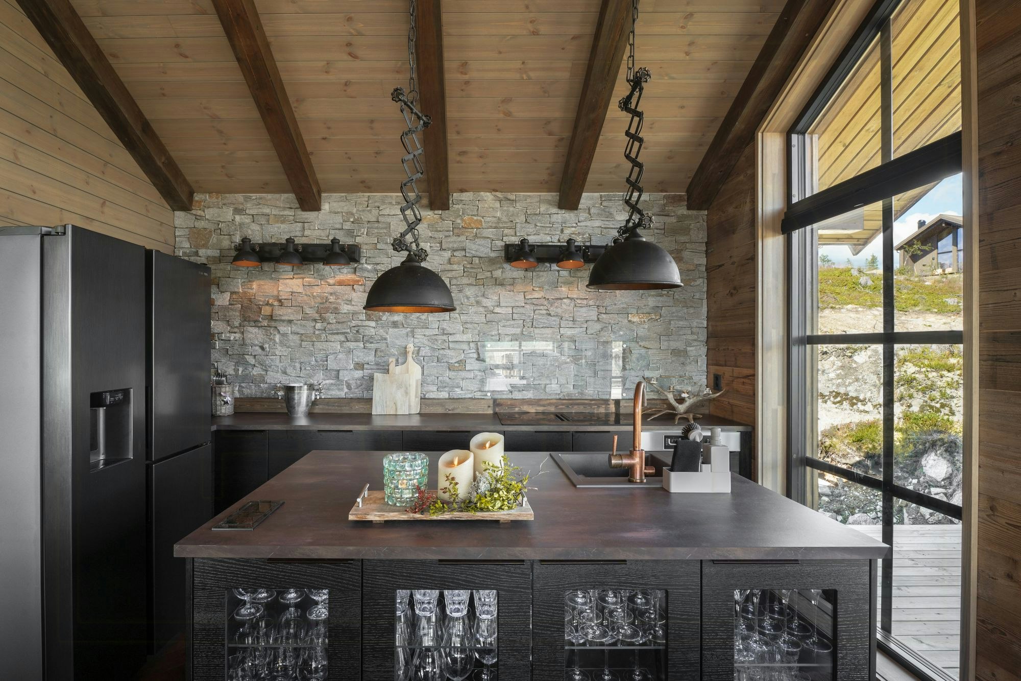 • Samlas runt matbordet för 16 personer och njut av utsikten över bergen genom de stora fönstren.