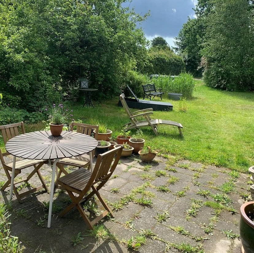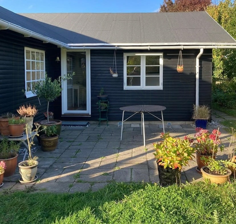 - Inhägnad och vildvuxen trädgård med härligt vindskydd och eldstad