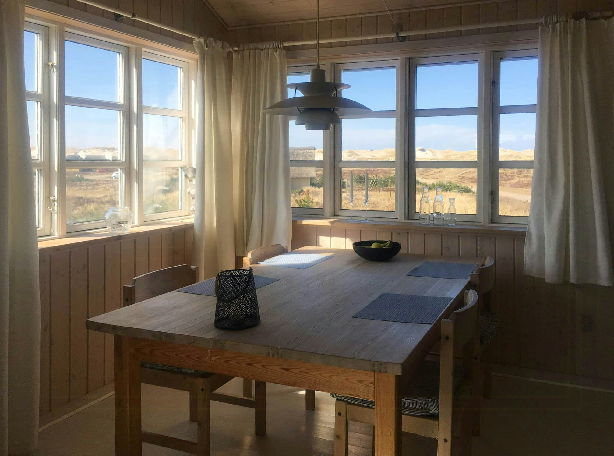 Mycket mysigt semesterhus som är mycket smakfullt inrett. Dessutom har man från huset en fantastisk utsikt över Nymindeån och sanddynerna. I området finns möjligheter till härliga promenader i plantagen som börjar på bakgården. Vi var 6 vuxna på en långhelg och allt fungerade bra, och med lite planering i köket kan man laga god mat.